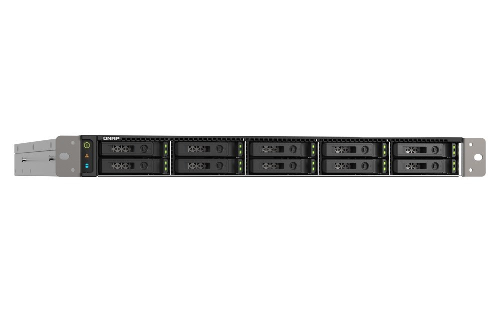 | Pozice pro diskové jednotky | 10 x 2,5" U.2 PCIe NVMe / SATA 6 Gb/s Systém se dodává bez SSD. Seznam kompatibilních disků SSD najdete na stránce https://www.qnap.com/compatibility/ |