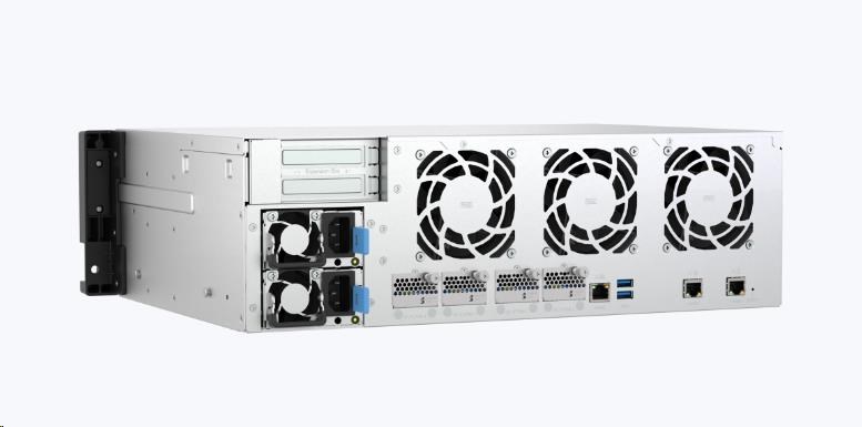 10GbE NAS TS-h1655XeU-RP nabízí vysoký výkon v kompaktním šasi 3U s malou hloubkou (29,6 cm / 11,6“), které je ideální pro serverovny s nedostatkem místa. Díky 8jádrovému procesoru Intel® a dvanácti 3,5” pozicím SATA se čtyřmi E1.S/M.2 PCIe NVMe sloty poskytuje TS-h1655XeU-RP flexibilní hybridní úložiště pro náročné pracovní úlohy, jako je virtualizace (VMware® a Hyper-V®) a aplikace náročné na data. Navíc redundantní zdroje napájení zajišťují spolehlivost systému pro spolehlivý provoz.