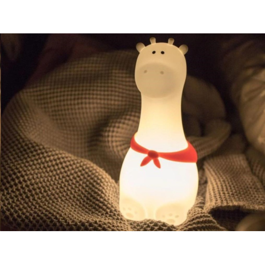 Dětská lampička v podobě roztomilé žirafy s barevnými šátky, vyrobená z měkkého, certifikovaného a zdravotně nezávadného silikonu, je ideální první lampičkou pro děti. Měkká lampička se stane věrným zvířecím kamarádek, který pomůže vašemu dítku s usínáním, doprovodí ho v noci na záchod a s nadšením s ním vyrazí za každým dobrodružstvím. Zapnout, vypnout lampičku, změnit barvu světla, je zcela jednoduché, stačí na lampičku poklepat.