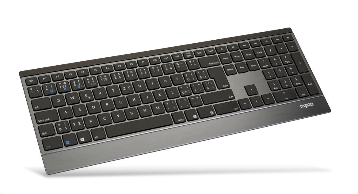 Tato ultratenká sada myši a klávesnice nabízí špičkové materiály se stylovým designem a komfortem užívání. Tělo klávesnice vyrobené z nerezové oceli a hliníkové slitiny je nejen pevné a odolné, ale zároveň dodává pracovnímu stolu určitý styl. Sada 9500M je nejen vyspělá konstrukcí, ale také funkcionalitou. Nabízí vícerežimovou technologii připojení firmy Rapoo – prostřednictvím spolehlivého bezdrátového vysílače 2,4 GHz, Bluetooth 3.0 a 4.1 – umožňuje současné připojení a přepnutí několika zařízení (s automatickým párováním). Myš v této sadě je vybavena plně nastavitelným vysoce výkonným optickým senzorem 600 až 1600 DPI. Navíc energeticky úsporná technologie firmy Rapoo zajišťuje životnost baterií až 12 měsíců, takže minimalizuje potřebu jejich výměny.