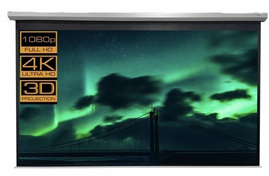 RC motorové plátno MOTOR CrystalLine 350x350cm, viditelná plocha 1:1, 195"/495cm, 350x350cm, bílý hranatý kovový tubus 15x365cm/41kg, uchycení na stěnu nebo strop, materiál BetaLux - bílá 0,52 tkanina 600g/m2 s černou zadní stranou, Gain=1,0, pozorovací úhel 150°. Lux - bílý matný povrch pro maximálně věrný a kontrastní obraz při alespoň částečném zatemnění. PVC materiál s textilním základem vytváří rovnou plochu bez zvlnění ale v krajích může docházet k prohnutí - postupně mizí. Snadné uchycení na bocích plátna - stěna nebo strop. Přívodní elektrický kabel je na levé straně tubusu (při pohledu na upevněné plátno). Součástí dodávky je RC dálkový ovladač. Krabička RC přijímače (lze připevnit na stěnu) je na přívodním síťovém kabelu a na jejím boku jsou další možná tlačítka pro ovládání plátna..