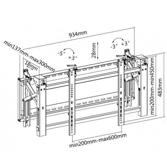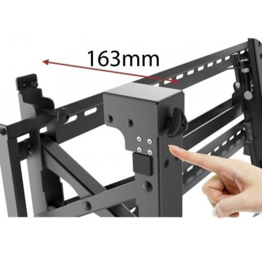 Nástěnný ocelový držák s výsuvným Pop-Out mechanizmem pro vytváření stěn z více Plasma nebo LCD TV s uhlopříčkou 45"- 70" (114-178cm) a hmotností maximálně 70kg. Uchycení VESA: 200x200, 300x300, 400x200, 400x400, 600x400. Popis: není vertikálně výklopný ani horizontálně otočný, proměnlivá vzdálenost od stěny 137-300mm, ochrana proti odcizení, materiál ocel, barva černá..