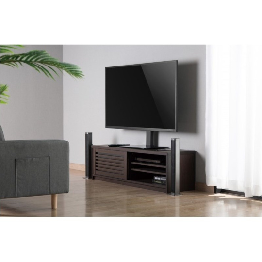 Televizní stojan na nábytek pro velké TV s uhlopříčkou 32"- 55" (81-140cm) a hmotností maximálně 40kg. Středový nosný profil na skleněné ploše, výška včetně TV 142,5-152,5cm, držák vertikálně výklopný +0°/-35° a otočný +35°/-35°, rozměry 43x28x67cm, materiál sklo/ocel, barva černá. Uchycení VESA: 100x200, 200x100, 200x200, 300x200, 300x300, 400x200, 400x400..