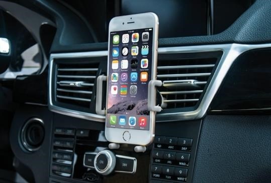 Stojánek pro chytré dotykové telefony 3-6" v horizontální i vertikální poloze do auta. Přísavný adapter na sklo a hladkou palubní desku s kulovou hlavou pro volné nastavení, uchycení do výdechu vzduchtechniky, fixace ze tří stran, plastové provedení, černý..