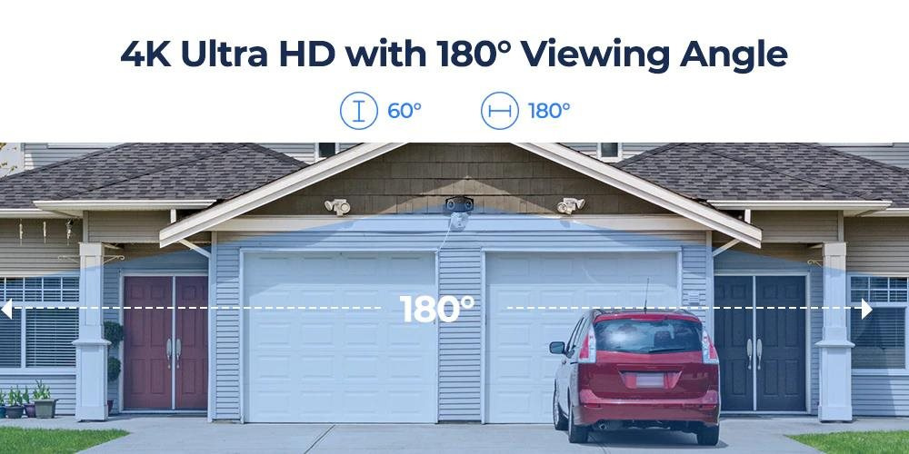 Kamera 4K PoE Floodlight s duálním objektivem pro zorné pole 180°
