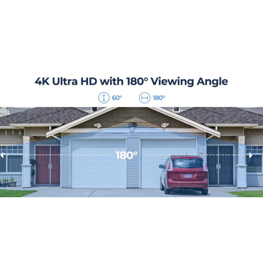 Floodlight Series F750W nabízí super široký pozorovací úhel 180° se dvěma čočkami. Pokrývá více oblastí. Obrazy zachycené dvěma čočkami jsou také dokonale spojeny do jednoho pro působivý vizuální zážitek.