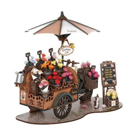 RoboTime 3D dřevěná skládačka Květinový vozík