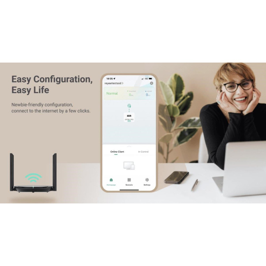 Registrace dealerské ceny: https://docs.google.com/forms/d/1sWwsswsbBk36eZx4CJrfl47qUvrORQyYz7kMjrt2f_c/prefill Popis produktu Cenově dostupný moderní bezdrátový router podporující pouze 2,4 GHz pásmo, 802.11n standard s přenosovou rychlostí 300 Mbps, má 4 fixní všesměrové antény se ziskem 5 dBi a produkt je navržený pro méně náročné domácnosti. Router nabízí kabelový 10/100 Mbps WAN port a k tomu 3x 10/100 Mbps LAN porty pro připojení stolních počítačů, tiskárny, herní konzole atd. Klíčové vlastnosti • Wi-Fi 4 (802.11n) • 2x2 MIMO, 300 Mbps • (4) 5dBi anténa • Podpora operačních režimů - AP Router, Repeater, Wisp • Lokální nebo vzdálená správa přes Ruijie Cloud • (1) 10/100 Mbps WAN + (3) 10/100 Mbps LAN • Guest WiFi Obsah balení • Zařízení • Napájecí adaptér 12V/1A • Patch kabel Technické parametry Bezdrátové vlastnosti Bezdrátové frekvence:2.4 GHz WiFi standardy:802.11n, 802.11b/g Přenosová rychlost - 2.4GHz [Mb/s]:300 Vysílací výkon 2.4GHz [dBm]:20 Šifrování:WPA-PSK/WPA2-PSK 2.4GHz MIMO:2 x 2 Typ antény:Fixní Počet fixních antén:4 Zisk antény [dBi]:5 Obraz Technologie a vymoženosti:Cloud Management Konektory a rozhraní Rychlosti WAN:(1) 10/100Mbps Rychlost LAN:(3) 10/100Mbps Napájení Max. spotřeba energie [W]:12 Napájení přes konektor/svorkovnici:12V / 1A Fyzické charakteristiky Použití:Vnitřní Tlačítka:Reset Provozní teplota [°C]:-10 až 45 Hmotnost [g]:260 Šířka [mm]:210 Výška [mm]:33 Hloubka [mm]:180 Software Operační mód:Repeater, AP Router, Klient Router (wisp) Výchozí IP adresa:192.168.110.1 Výchozí jméno a heslo:Nastavuje se při prvním spuštění.