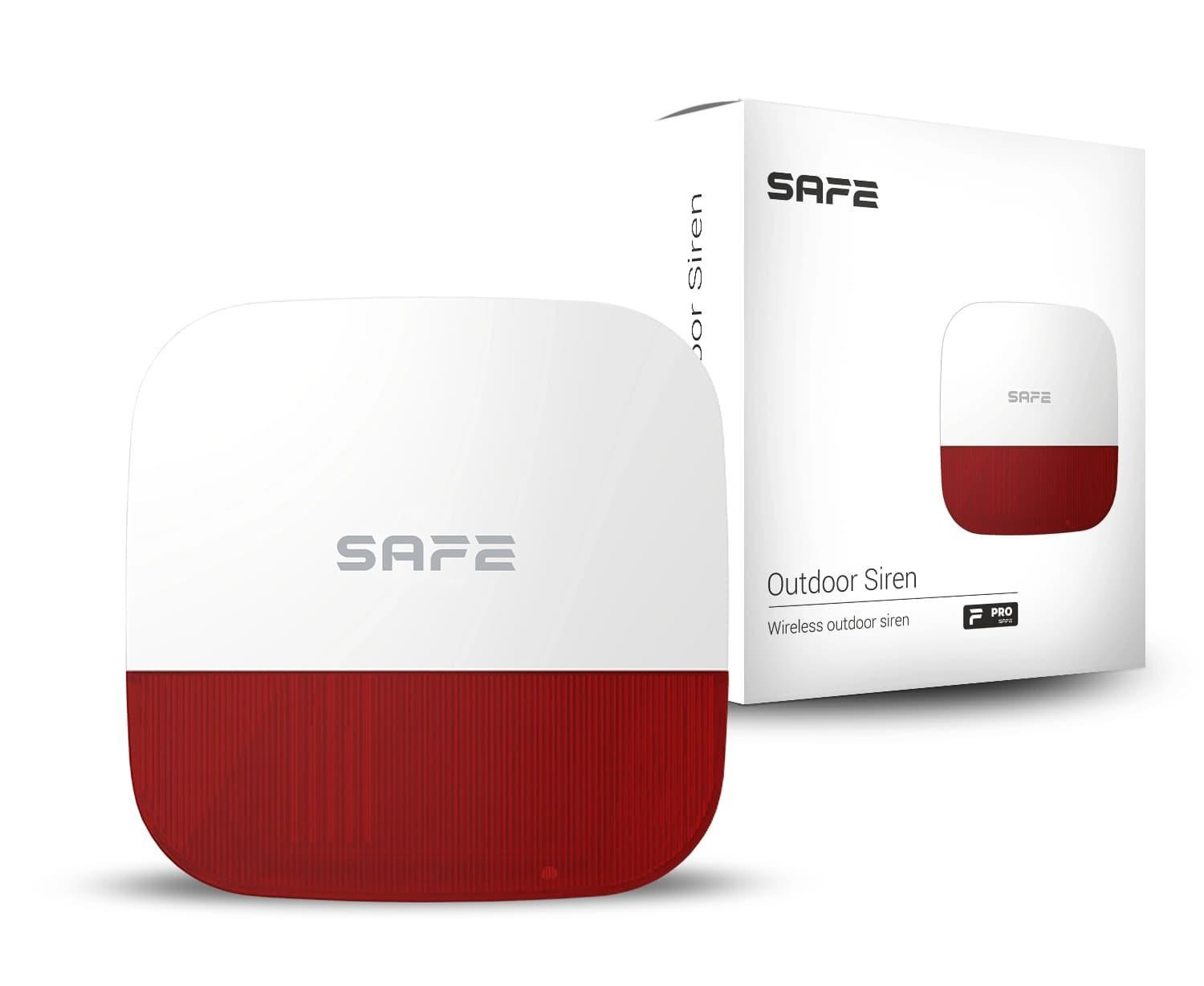 Outdoor Siren je bezdrátová siréna určená pro použití ve venkovních prostorech, která nabízí 3 úrovně intenzity hlasitosti, 3 typy tónů signalizace a nastavitelný interval doby akustické signalizace poplachu. Součástí sirény je skupina 12 LED diod poskytující intenzivní a jasnou optickou signalizaci poplachu. Napájení zajišťují 4 baterie typu CR123A, které umožňují provoz sirény až po dobu 4 let. V případě potřeby lze připojit externí napájecí zdroj 12 V DC. Díky unikátnímu protokolu SAFE Keeper může siréna komunikovat s centrálními ovládacími panely SAFE až na vzdálenost 1600 m v otevřeném prostoru..... více