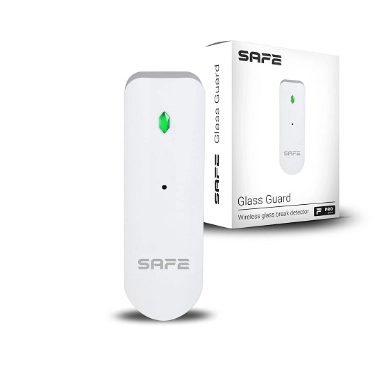 Glass Guard je velmi malý bezdrátový detektor tříštění skla určený pro zabezpečení prosklených ploch vybavený dvěma NC vstupy. Vícefaktorová detekce tříštění skla s možností vzdálené konfigurace citlivosti výrazně eliminuje výskyt falešných poplachů. Díky šifrovanému komunikačnímu protokolu SAFE Keeper zajišťuje bezpečné spojení s centrální ovládací jednotkou zabezpečovacího systému SAFE až na vzdálenost 1 600 metrů v otevřeném prostoru. Detektor je napájen vyměnitelnou baterií, která umožňuje nepřetržitý provoz až po dobu 3 let..... více