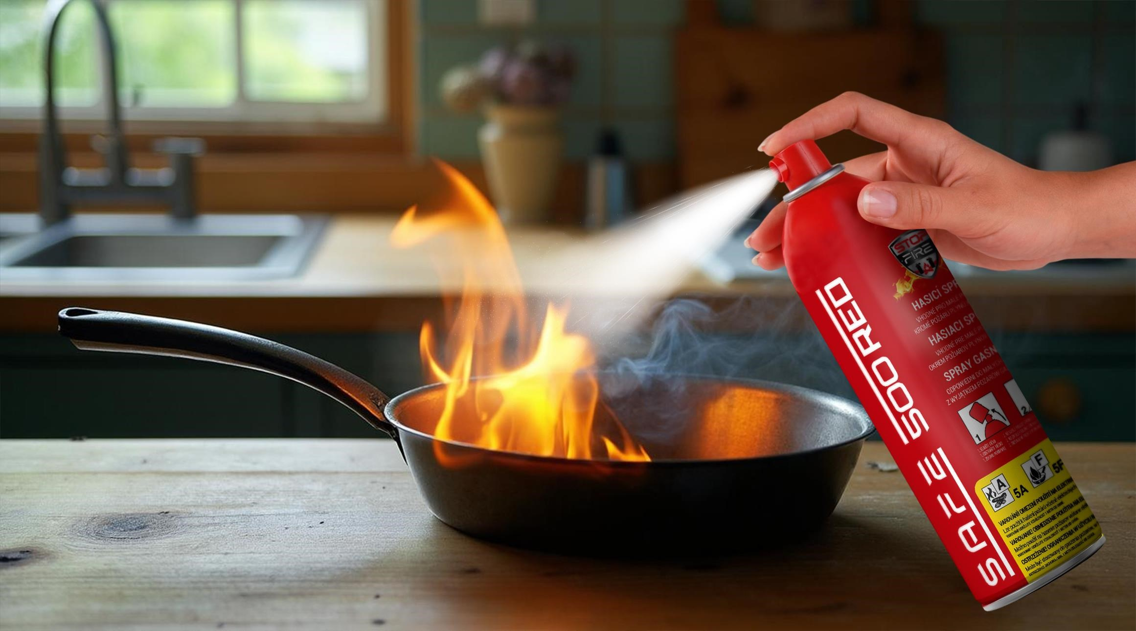 Univerzální hasicí sprej SAFE 500 RED pro hašení požáru typu A (pevných hořlavých látek), F (jedlých olejů a tuků), E (elektrických zařízení pod proudem do 1000 V). Je primárně určen k hašení začínajících požárů v domácnostech, kuchyních, garážích, automobilech, kancelářích, chatách atd. Možnost použití až do - 20 °C..... více