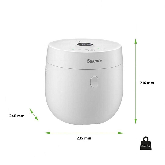 Salente Jasmine uvaří až 10 porcí přílohové rýže najednou. Vnitřní nádoba rýžovaru má totiž objem 1,9 litru, takže do ní můžete nasypat až 640 g syrové rýže, což odpovídá asi 1600 g rýže uvařené. Jedná se tak o skvělou pomůcku i pro přípravu většího rodinného oběda nebo velkolepé sushi party, na kterou pozvete všechny své přátele.