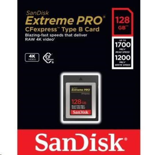 SanDisk Extreme Pro CFexpress Card 128GB, Type B, 1700MB/s Read, 1200MB/s Write