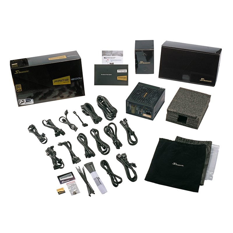 | Cable type | Motherboard, CPU, PCIe - Black webbeb cables SATA, Molex, Floppy - Flat black cables | |