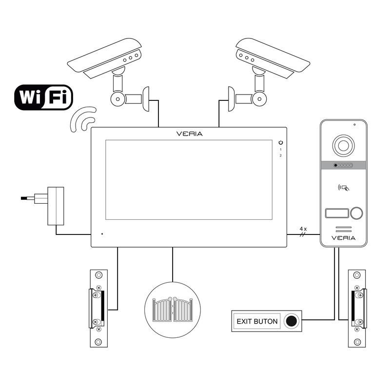 SET vstupní kamerové jednotky VERIA 301 a barevného LCD monitoru VERIA 3001-W vybaveného Wi-Fi připojením s komunikací do aplikace TUYA. K setu lze připojit další dvě externí AHD kamery. 4vodičové propojení..... více