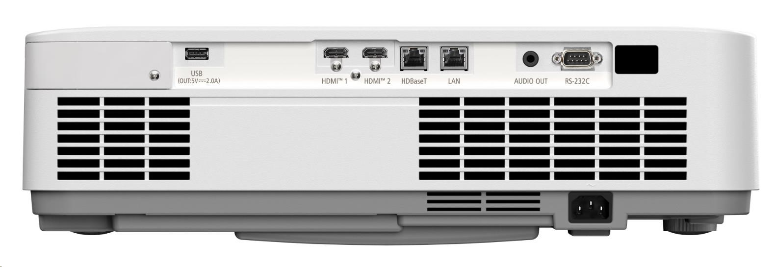 Speciální Charakteristika AMX Beacon; bez náklonu; Bezpečnostní Kensington slot; Carbon Savings metr; Crestron Connected; funkce Auto Power ON/OFF; Funkce Control ID; funkce Direct Power-Off; Funkce rychlého spuštění Quick Start; HDBaseT; Nastavení světelného zdroje; NaViSet Administrator 2; nápověda; ochrana heslem; OSD v 25 jazycích; Ovládání HTTP prohlížeče; PJ LINK; Režim konstantního jasu; Svislé nastavení; Testovací vzor; Unique Power Saving Functions; USB Viewer; volitelné uživatelské logo; výběr zdroje s funkcí Píp; Zvětšení; zámek klávesnice