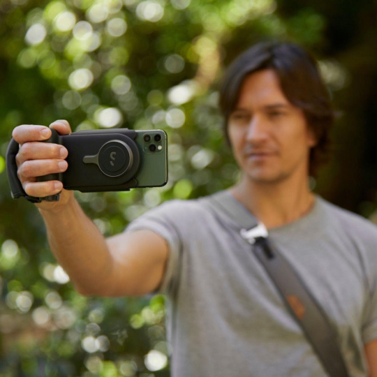 Stává se vám, že na konci dne plného pořizování videa a fotografií cítíte napětí v zápěstí? Jakkoliv je telefon praktickým pomocníkem, jeho tvar z ergonomického pohledu zkrátka není ideální. A to zejména v porovnání se zrcadlovkou. Právě tento problém překonává sada ProGrip od ShiftCam - sada, díky které získáte mnohem pohodlnější i bezpečnější úchop vašeho smartphonu. Precizní tvarování i výběr materiálů je dotažen do nejmenších detailů. Nechybí tak opěrka pro palec a ergonomické zaoblení, aby byl tlak vyvíjený vaší dlaní rovnoměrně rozložen. Odolná povrchová úprava rukojeti zabraňuje jejímu ulepení a opotřebení v průběhu času. Vysoce kvalitní gumový potah je protiskluzový, odolný proti potu a zároveň měkký na dotek.