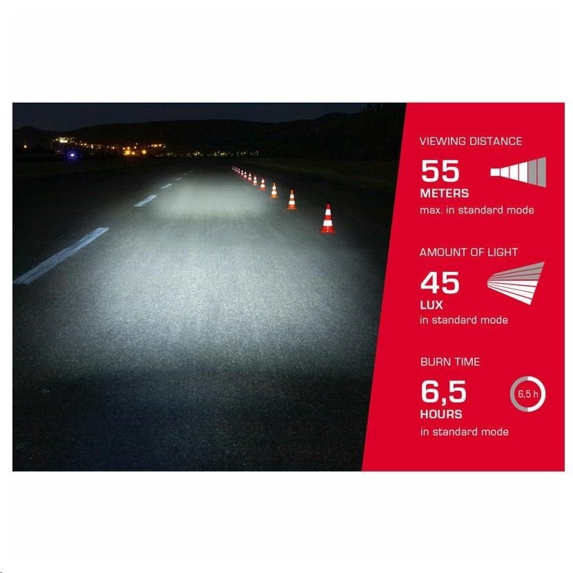 Aura 45 USB s Osram Led diodou pro konstantní světelný výkon má intenzitu osvětlení 45 luxů ve 4 zónách - středové, boční, daleké a blízké. To zabezpečí vynikající viditelnost a větší bezpečnost v silničním provozu.