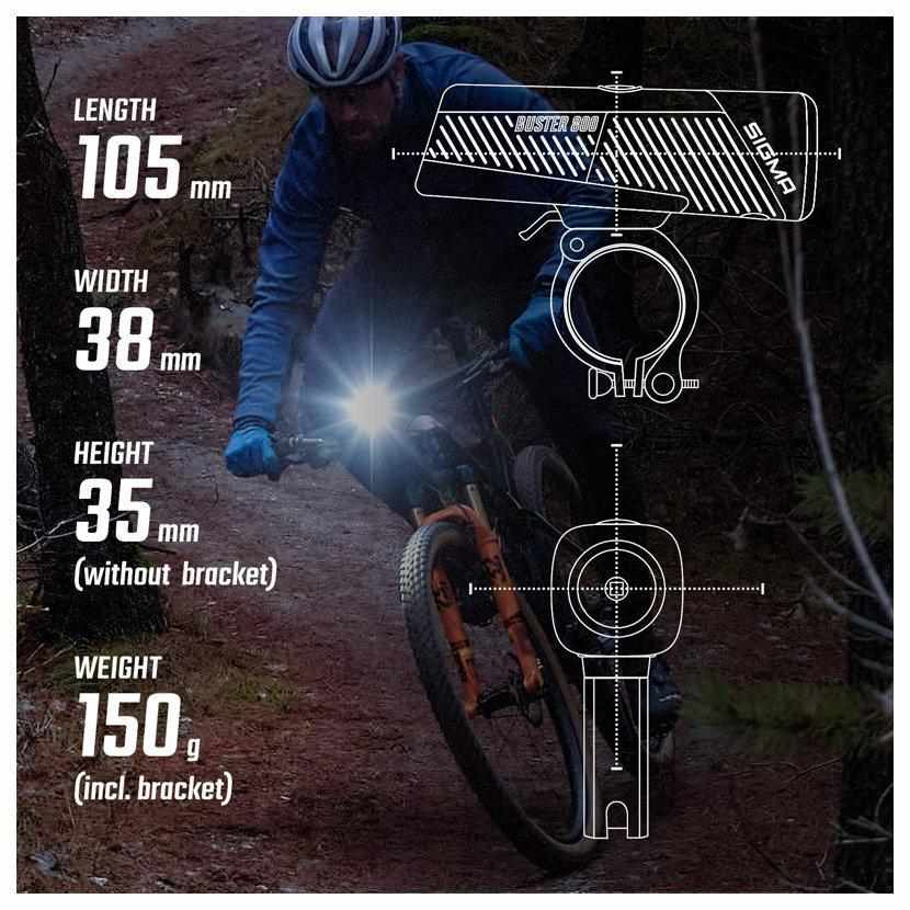 Buster 800 se upevňuje na řídítkách pomocí šroubovacího držáku zcela bez nářadí. Podle potřeby lze světlo horizontálně i vertikálně vyrovnat a perfektně tak dosedne i na prohnutá řídítka. Rychlým uvolněním rychloupínáku můžete světlo rychle sundat z řídítek. Světlo Buster 800 lze z držáku snadno sundat a znovu nasunout. SIGMA držák na řídítka je vhodný pro řídítka o průměru 22–35 mm.