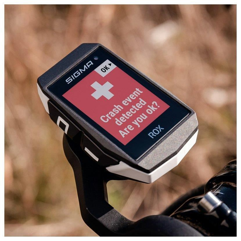 Čidlo pádu CRASH ALERT integrované do ROX 11.1 EVO rozpozná pád a poskytne 30 sekund času pro potvrzení, že je vše v pořádku. Pokud tomu tak není, budou automaticky pomocí aplikace SIGMA RIDE informovány nouzové kontakty prostřednictvím SMS a budou jim odeslány GPS souřadnice. Navíc lze uložit informace pro případ nouzové situace, jako je krevní skupina, jméno a užívané léky. Tyto údaje se zobrazí v případě nouzové situace na displeji.