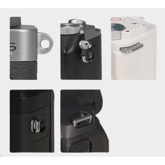 Zápěstní popruh se instaluje provlečením lana přímo smyčkou ramenního popruhu fotoaparátu, která je kompatibilní s většinou rozhraní ramenních popruhů fotoaparátu.