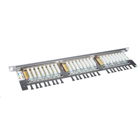 High-density 0,5U stíněný patch panel CAT6 24 portů s vyvazovací lištou.