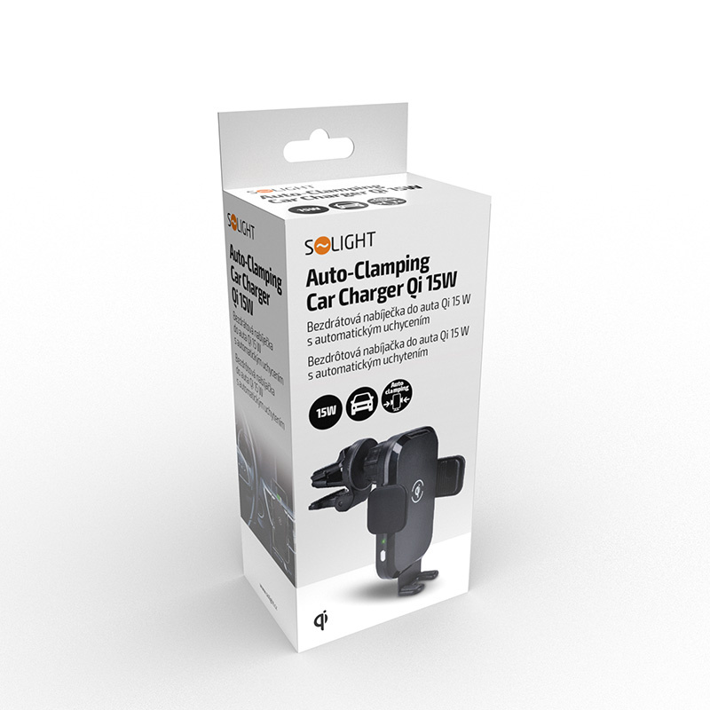 Solight bezdrátová nabíječka do auta Qi 15W s automatickým uchycením