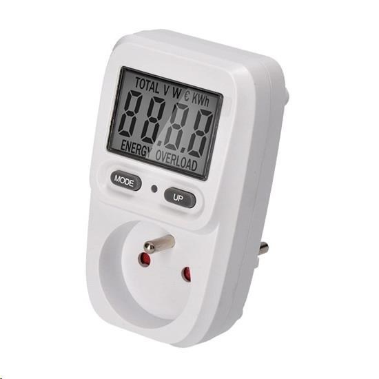 přehledný LCD displej, úhlopříčka 2" - 5cm max. měřená spotřeba: 9999kWh min. množství zaznamenávaného příkonu: 2W, max.: 3680W/16A nastavení ceny za energii 2 tlačítka pro jednoduchou obsluhu přesný výpočet ceny a měření spotřebované energie dětská pojistka indikace překročení max. příkonu "overload" měření elektrických veličin: napětí, okamžitý odebíraný výkon integrovaný stabilizátor napětí až do +- 1,5% odchylky od jmenovitého napětí pro přesné měření pracovní teplota: 0 až + 50°C napájení: AC 230V, 50Hz.