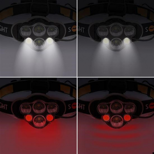 nabíjecí LED čelová svítilna s bílým a červeným světlem svítivost: max. 550lm 8 režimů svícení: 4x základní režimy + 4x přídavné režimy* 6x přední LED dioda 1x zadní LED dioda se samostatným vypínačem outdoorové užití (stupeň krytí IP44) výdrž baterií min/max: 4hod./16hod. doba nabíjení: 9hod. napájení: 2x baterie 18650 3.7V 2200mAh Li-on nabíjení: micro USB barva: černá * pro aktivaci přídavných režimů svícení dlouze přidržte tlačítko.