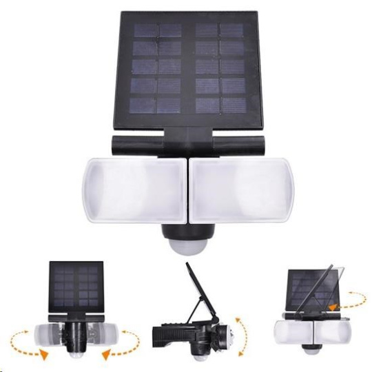 LED osvětlení se solárním panelem a nastavitelným světelným a pohybovým čidlem světelné reflektory i solární panel lze horizontálně i vertikálně natáčet a naklápět vhodné pro osvětlení venkovních částí prostor bez přívodu elektrické energie (parkovací stání, pergoly, kůlny, zádomí, vstupní branky apod.) příkon: 8W světelný tok: 600lm teplota světla (chromatičnosti): 4000K (neutrální bílá) nastavení času svícení: cca 10s-60sec nastavení světelné citlivosti: 10-1000lux úhel detekce senzoru: 110° detekční vzdálenosti: cca 8m doba nabíjení baterie solárním panelem: cca 8 hodin (v závislosti na světelných podmínkách) čistá doba svícení: max. 1hod. baterie:1x Li-Ion 3,7V 2000mAh vypínač: vypnuto (OFF) / automatické spínání (AUTO) barva: černá.