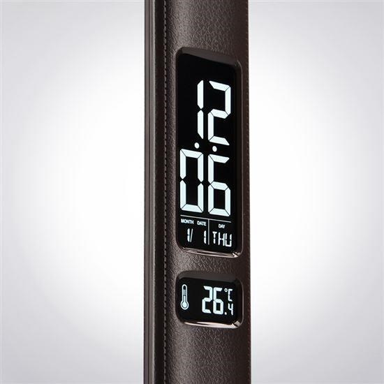 Solight LED stolní lampička s displayem, 9W, volba teploty světla, kůže, hnědá