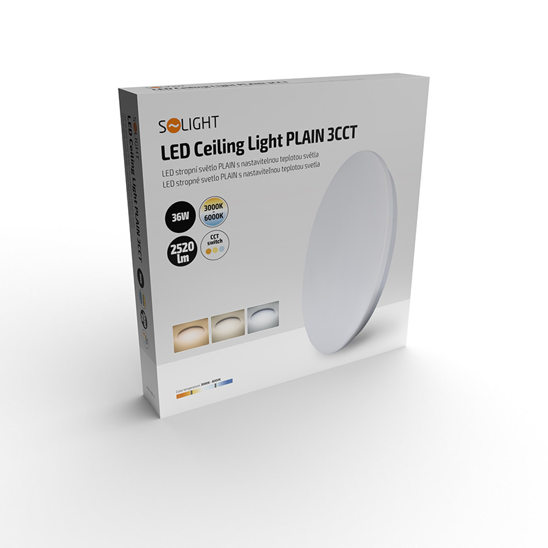 Solight LED stropní světlo Plain, 3CCT, 36W, 2520lm, 3000K, 4000K, 6000K, kulaté, 45cm