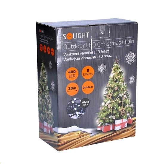 SOLIGHT LED venkovní vánoční řetěz, 400 LED, 20m, přívod 5m, 8 funkcí, IP44, studená bílá