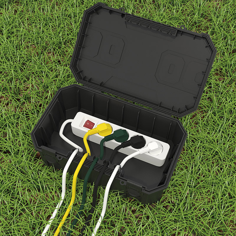 Voděodolná a prachotěsná krabice třídy IP54 je bezpečná ochrana před poškozením kabelových spojení. Uschová prodlužovací přívody, napájení nebo rozbočení anténních a internetových rozvodů, vánočního osvětlení, časové spínače, apod. Zabraňuje oxidaci konektorů a zkratům vlhkem, chrání před nečistotami. Uzamykatelné víko chrání kabelové spoje před rozpojením nebo poničením cizími osobami. Lze použít s elektrickými zařízeními ve venkovním i vnitřním prostředí..... více