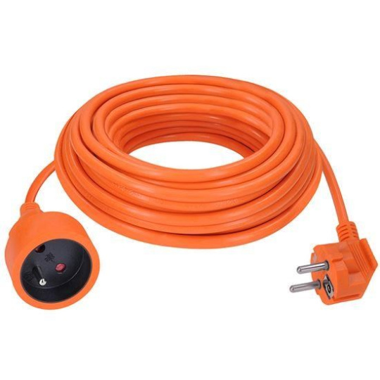 Oranžový prodlužovací kabel s délkou 7 metrů a jednou zásuvkou je ideální k prodloužení elektrické energie na zahradě nebo v dílně. Díky třem vodičům včetně uzemnění je vhodný pro připojení jakýchkoli zařízení s třípólovou uzemněnou i dvoupólovou neuzemněnou vidlicí přívodní šňůry. Barevné odlišení od okolního prostředí zvyšuje bezpečnost při práci.