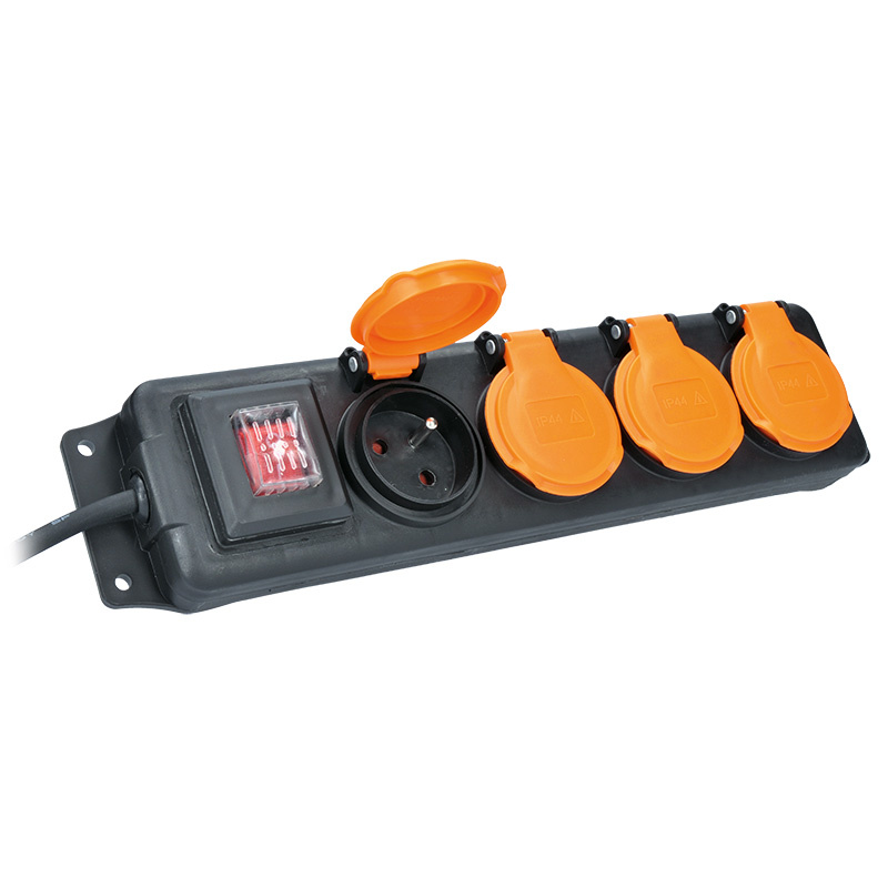 Solight prodlužovací přívod IP44, 4 zásuvky, gumový kabel, vypínač, venkovní, 10m