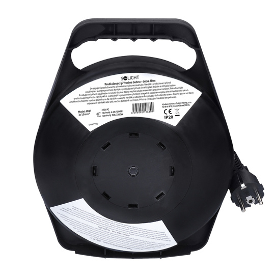 Solight prodlužovací přívod na bubnu, 4 zásuvky, 10m, černý kabel, 3x 1,5mm2