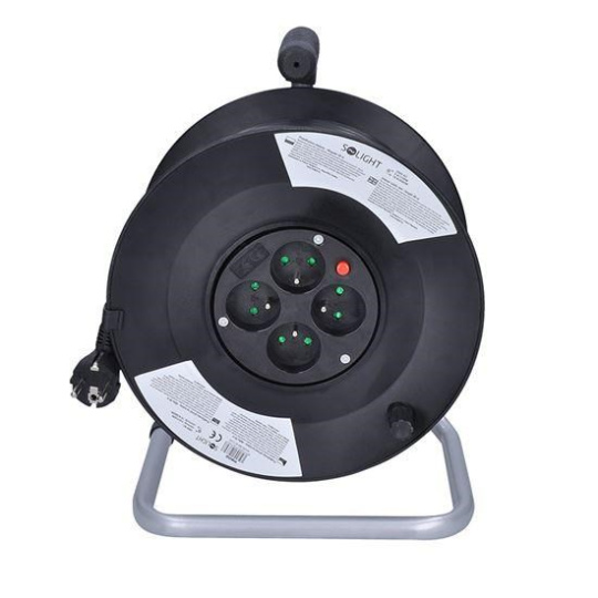Solight prodlužovací přívod na bubnu, 4 zásuvky, 50m, černý kabel, 3x 1,5mm2