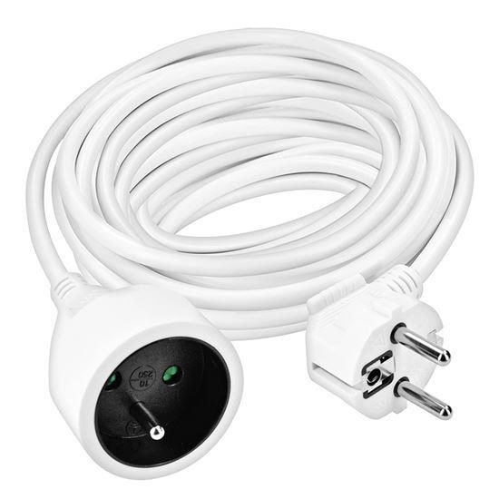 Kompaktní bílý prodlužovací kabel s délkou 10 metrů a jednou zásuvkou je ideální pro jednoduché prodloužení elektrické energie v domácnosti, kanceláři nebo dílně. Vhodný pro připojení samostatného zařízení mimo dosah pevné zásuvky.