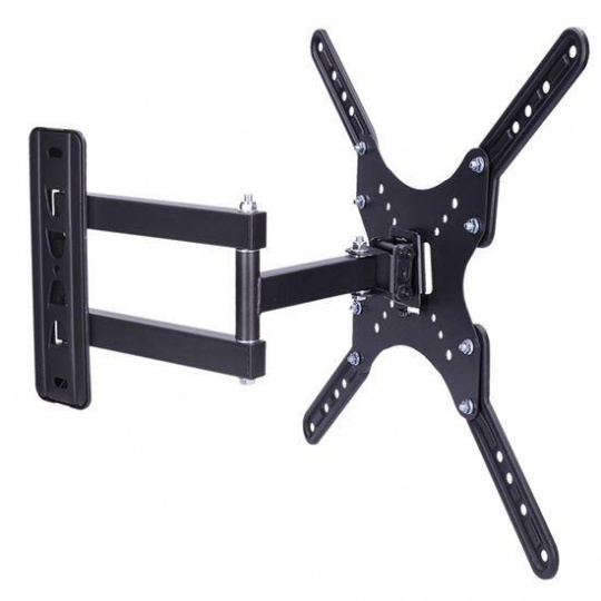 pro všechny ploché TV s úhlopříčkou 58cm - 140cm (23'' - 55'') VESA: 75 x 75; 100 x 100; 200 x 100; 200 x 200; 200 x 300; 200 x 400; 300 x 300; 400 x 200; 400 x 300; 400 x 400 max. nosnost: 30kg profil od stěny: 70 - 408mm naklopení: ± 8° horizontální otočení: ± 90° integrovaný kabelový management obsahuje potřebnou instalační sadu barva: černá.