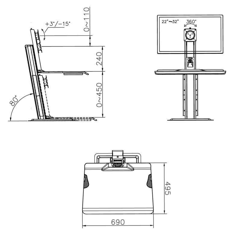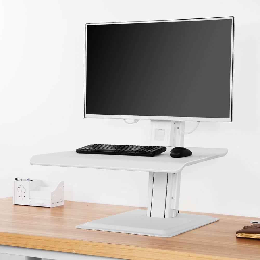 Stolní stojan na monitor, klávesnici a myš NB ST15W Ergonomická pracovní stanice - stolní stojan na monitor 19-32", s policí na klávesnici a myš, výškové nastavení pro práci vestoje nebo v sedě, úprava výšky, sklonu a rotace monitoru, VESA 75x75 a 100x100, nosnost 11kg Profesionální pracovní stanice pro moderní kanceláře - rychlá a snadná změna pozice pro práci vsedě nebo vestoje díky pokročilému systému změny výšky. Stojan podporuje VESA standardy 75x75 a 100x100, umožní Vám rychlou změnu výšky +/- 45cm. Nastavení polohy samotného monitoru: úprava výšky od police +/- 11cm, náklon +3°/-15°, horizontální nebo vertikální otočení. Nosnost 11kg. Profesionální konstrukce, estetický dizajn, luxusní bílé provedení. Systém pro vedení kabeláže. Záruka 5 let. Stolní stojan na monitor s nastavením výšky pro práci vsedě nebo vestoje NB ST15W Technické údaje: nosnost 11kg na monitory s úhlopříčkou 19-32" podpora VESA standardů 75x75 a 100x100 rychlé nastavení výšky pro práci v sedě nebo vestoje +/- 45cm pokročilý systém výškového polohování - snadno, rychle, bez nářadí výškové polohování samotného monitoru 110mm police na klávesnici a myš s rozměry 690x495mm základna o rozměrech 450x480mm (minimální potřebný prostor na stole) nastavení náklonu monitoru +3° / -15° systém pro skryté vedení kabeláže esteticky ukrytý USB port profesionální pracovní stanice nejvyšší kvality vynikající stabilita krásný dizajn v bílém provedení záruka 5 let Polohovatelný stolní stojan na monitor, klávesnici a myš pro práci vsedě nebo vestoje NB ST15W Stolní stojan na monitor NB ST15W podporuje VESA standardy: VESA 75x75 VESA 100x100 Pracovní stanice, profesionální, nastavení výšky monitoru od police na klávesnici s myší - Fiber Mounts ST15BPracovní stanice pro práci vestoje nebo vsedě, výškové polohování 450mm - Fiber Mounts ST15B Nastavení náklonu monitoru na pracovní stanici Fiber Mounts ST15BPracovní stanice do kanceláře pro práci vestoje nebo vsedě, pokročilý systém výškového polohování - Fiber Mounts ST15B Profesionální stolní pracovní stanice pro pohodlnou práci vsedě nebo vestoje, rychlá a snadná změna požadované výšky až +/- 45cm. Snižuje bolest zad a zvyšuje pracovní výkon a pohodlí. Krásný dizajn, který si získá nejen Vás, ale úplně každého..