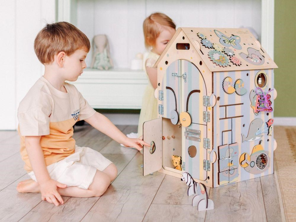Svítící activity board domeček - ZOO pastel