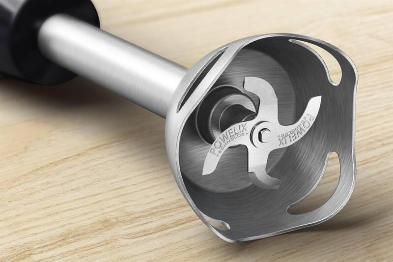 Ponorný mixér Tefal řady Quickchef+ je výborný pomocník do každé domácnosti. S příkonem 1 000 W, plynulou regulací rychlostí a turbo režimem je zaručeno vysoce výkonné mixování. Čepele Powelmix mají 4 ostré nože, s jejich pomocí rozmixujete ingredience rychle do požadované struktury. Ve výbavě je i odměrná nádoba s objemem 800 ml, šlehací metla a také sekací nástavec.