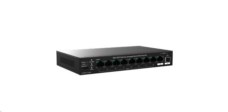 • Rozhraní: (9) 1GE RJ45 porty, (1) 1GE SFP porty