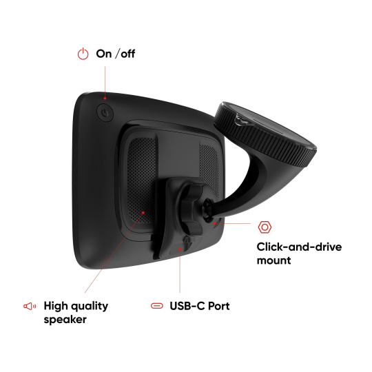 Vložení a vyjmutí navigačního zařízení je rychlé a snadné – zvládnete to i jednou rukou. Napájecí kabel vede přímo do držáku, takže stačí navigační zařízení umístit do držáku a po příjezdu ho vyjmout.