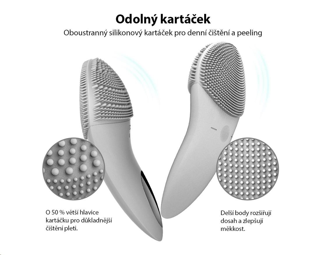 • Oboustrannou čisticí hlavu lze použít pro každodenní čištění a exfoliaci.