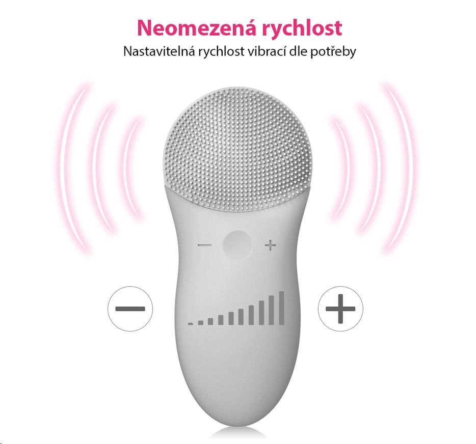 • Rychlost vibrací je nastavitelná pro přizpůsobení různým potřebám pokožky.