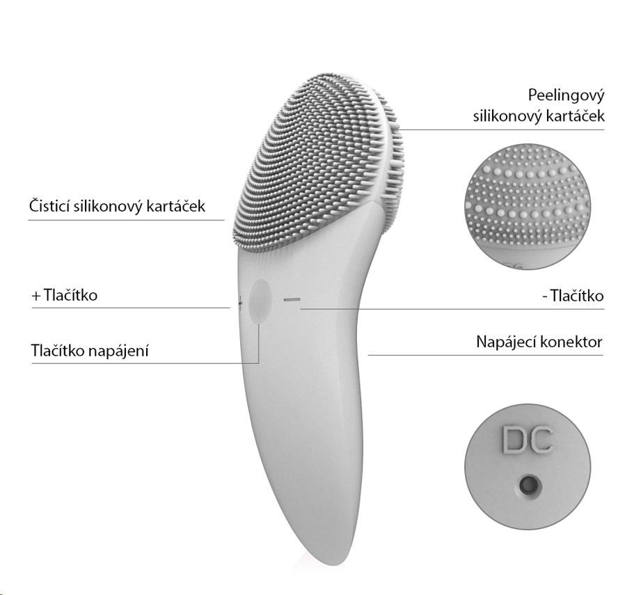 • Měkký povrch silikonového kartáče, šetrný k pokožce.