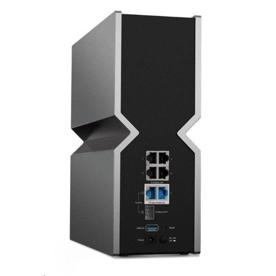 • Dva 10G porty: 1× 10 Gb/s kombinovaný ethernetový/optický port WAN/LAN + 1× 10 Gb/s WAN/LAN port + 4× 2.5 Gb/s porty + 1× USB 3.0 port zajišťují maximální flexibilitu a zvýšenou propustnost.§