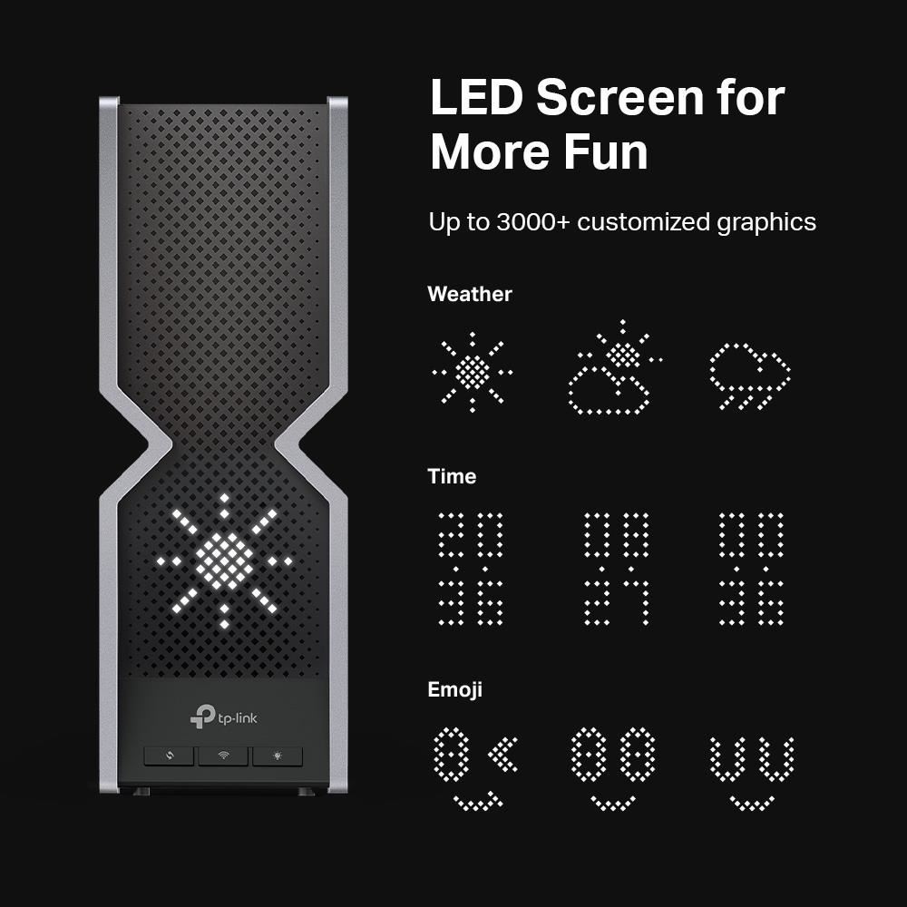 - Nový koncept Wi-Fi routerů: Výkonná technologie Wi-Fi 7, bleskurychlé kabelové připojení, zcela nový design a LED displej.